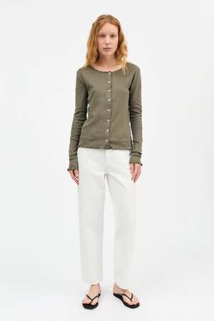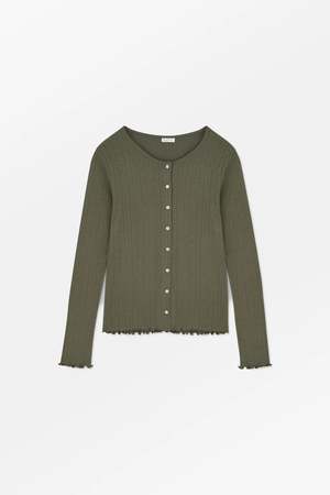 Soft cotton cardigan in an openwork knit with overlocked finishes and buttons. DETAILS Long sleeves Openwork knit Overlocked finishes 100% organic cotton jersey GOTS certified Machine washable at max 30C Made in India GOTS CERTIFIED This product is GOTS certified.