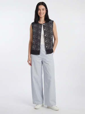The Mollie top by Skall Studio is a sleeveless, button-down blouse featuring delicate all-over rose embroidery. Designed with a round neckline and buttons down the front, it offers an effortlessly elegant silhouette perfect for both casual and polished outfits. The Mollie top pairs beautifully with the matching trousers, linen pants, or high-waisted denim for versatile styling. The model is 176 cm tall and is wearing a size 36. Details - Round neck blouse - Sleeveless - Buttons down front - All-over rose embroidery Fabric & Care Composition: 55% linen, 45% organic cotton Care: Handwash only.