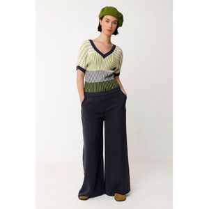 Multicoloured short-sleeved V-neck sweater made from a lightweight ribbed knit in GOTS-certified organic cotton. Fabric: 100% organic cotton. HOW DO I MEASURE MYSELF? Chest To measure the chest, measure around the body at the most outward part of the chest and back, just below the armpit. Waist Measure around the natural waistline at the smallest part of the waist. Hips Standing with your legs together, measure around the widest point of the hip line. Age group: Adult. Type: Sweaters.