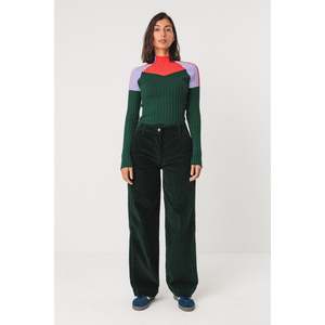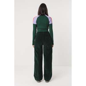 Straight leg, ankle length corduroy trousers in GOTS certified organic cotton. They have slant pockets and a zip fly at the front and patch pockets at the back.