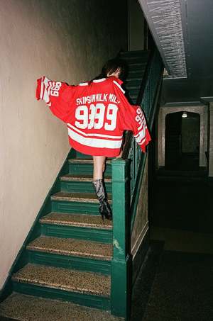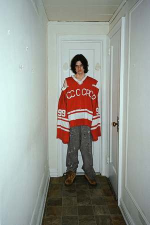 Each oversized jersey is made from two CCCP Skim Milk hockey jerseys cut and hand sewn by CD 1974. With arm holes at the shoulder, there are two ways of wearing this piece. Only 4 made! This quality piece is made from 100% polyester and is washing machine safe. Primarily designed for men, but suitable as a unisex item. Size in product image is a Small. Small: Arm pit to arm pit: 35 inches Shoulder to bottom: 29 inches Sleeves: 21 inches Medium: Arm pit to arm pit: 36 inches Shoulder to bottom: 31 inches Sleeves: 22.5 inches Large: Arm pit to arm pit: 37 inches Shoulder to bottom: 32.5 inches Sleeves: 22.5 inches X-Large: Arm pit to arm pit: 39 inches Shoulder to bottom: 35 inches Sleeves: 25.5 inches