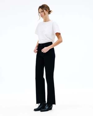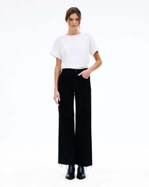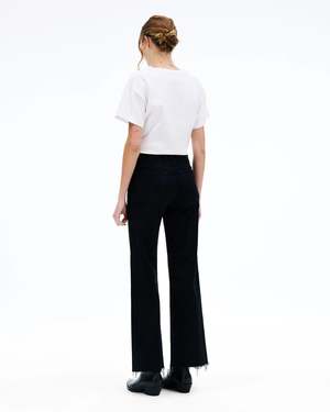 Grace is a signature style designed to elongate the leg with a high-rise waist and a playful wide-leg silhouette. Quality and craftsmanship are the heart of SLVRLAKE. Fabric: 98% Cotton, 2% Elastane Spot clean marks between washing with a clean damp cloth. Machine wash cold on a delicate spin with similar colours. Lay flat or hang dry away from direct heat or sunlight. Made in U.S.A. Measurements: Fits true to size, take your usual size. For a curvier shape, consider sizing up. Model is 5'9" and is wearing size 25.