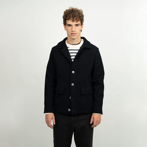 The Radial Jacket is a knitted jacket with a button closure and relaxed collar. Featuring two front flap pockets with hidden button closure, front metal button closure, and a rugged textured hand feel. 100% pure virgin wool. Knitted in Latvia.