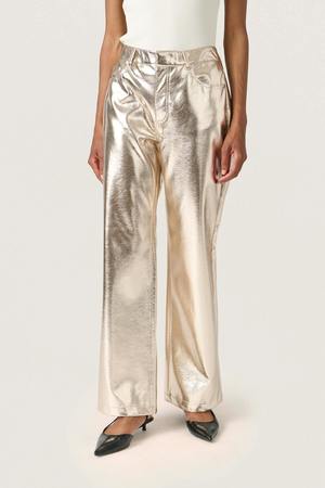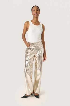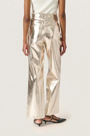 The SLDanila Pants by Soaked in Luxury feature a metallic finish, high waist, and wide full-length legs. These pants add a bold and modern touch to any festive wardrobe. - Straight cut - High waist - Wide, full-length leg - Lightweight and flexible fabric - Color: Gold - Model is 176 cm and wears size S - It is recommended to take your usual size - 100% viscose - Wash inside out on delicate cycle.
