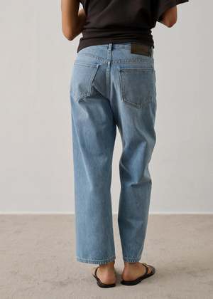 Soeur's Harrison Jeans are crafted from a soft blend of organic and recycled cotton. The Harrison Jeans feature a straight fit, a button fly front closure, two front and two back patch pockets, and a leather logo2 patch on the back waist. This product runs large, so we recommend choosing a size smaller than your usual size. Model is wearing a size 36. 70% organic cotton, 30% recycled cotton. Machine wash cold, lay flat to dry. Made in Tunisia.