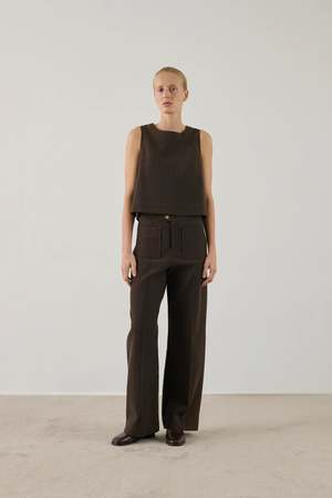 Straight-cut cotton canvas top with a round neckline, invisible zip fastening at the back, and side slits. 100% Cotton. Made in Tunisia.