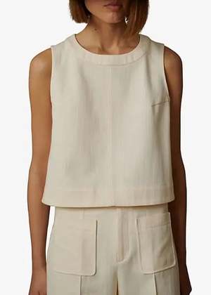 Soeur's Pampa Top is crafted from structured cotton canvas and features a straight cut, round neckline, an invisible zip fastening at the back, side slits, and a cropped length. Fits true to size; model is wearing a size 38. 100% cotton. Hand wash cold, lay flat to dry. Made in Tunisia.