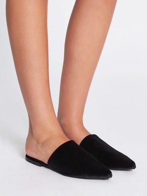 Made with a smooth velvet upper these slip-on Grace Slides from Sol Sana in Black have a cushioned footbed and a small heel, making them perfect for any occasion. These extremely chic slides are perfect for a paired down evening look or to dress up a jeans and blouse combo. FABRIC OR COMPOSITION The Sol Sana Grace Slides in Black is made from fabric upper, leather inner, synthetic sole SIZE AND FIT The Sol Sana Grace Slides in Black fit true to size Heel Height: 0.25in / 0.6 cm