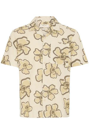 An easy, elevated take on a warm-weather staple. The Trenton Buttondown features a relaxed silhouette with a soft, breathable linen blend that keeps things cool while still feeling polished. The subtle floral print adds just the right amount of personalityeffortless, but not overdone. Designed with a classic camp collar, chest pocket, and lightweight drape, this is the kind of piece that works from day to night, beach to dinner. Details: 58% Linen, 42% Viscose Lightweight + breathable Relaxed fit Button front closure Chest pocket Subtle floral print