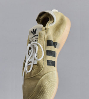 The Taekwondo Mei reinterprets an archival adidas silhouette through the lens of Song for the Mute. Constructed in beige brushed suede, the upper carries a muted warmth, softened further by tonal stitching and raw-edged detailing. Contrasting black three-stripe marks anchor the side profile, with gold foil lettering and an exposed heel tab nodding to its origins. An elasticated heel lock secures the fit with ease, completed by co-branded tongue labels and a low-profile rubber sole. Each pair is individually distressed, ensuring no two are ever alike.