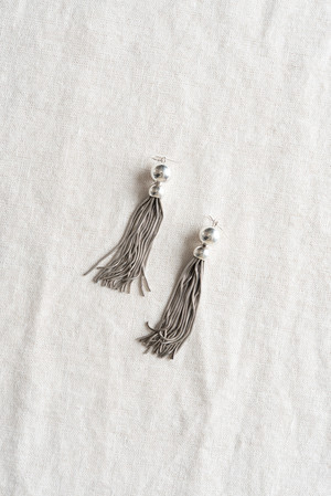 Tassel earrings by Sophie Buhai made from sterling silver with a long, elegant shape yet playful vibe. Details - Sterling silver - Length: 3" - Width of large silver bead: .5" - Handcrafted in Los Angeles Designer Bio Jewelry designer Sophie Buhai creates modern, sculptural pieces from recycled sterling silver out of Los Angeles, California. Each piece is masterfully handmade with a substantial weight and embodies simple elegance.