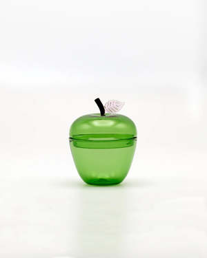This glass apple, fitted with a stemmed lid, was inspired by a jar of sugar cubes from Sophies childhood. Its scale, though petite, is generous enough to host accoutrements for the table, flaky sea salt by the stove, or loose leaf tea.