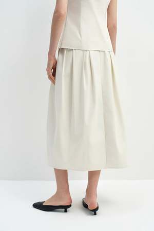 A voluminous balloon skirt with a pleated waist, designed to create architectural shape while maintaining lightness and movement. DETAILS - 100% cotton - Relaxed fit. True to size. Non-stretch. - Model is 5'10", 119 lbs, wearing size S. Bust 31.5" / Waist 23.6" / Hips 35.4"