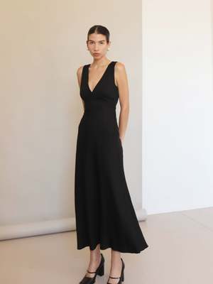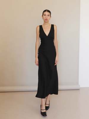The black linen dress we have been looking for! The Conor Black Linen Midi Dress features a v neckline with deep v back & tie closure. Perfect for those casual summer weddings or dinner dates on the patio. XS: Bust 34 Waist 26 Hip 42 Length 54 Small: Bust 36 Waist 27 Hip 44 Length 55 Medium: Bust 38 Waist 29 Hip 46 Length 53 Large: 42 Waist 32 Hip 48 Length 57 Model is 5'8" and is wearing size Small Keilah is 59 & wearing the XS - Runs slightly small - in between sizes, size up Fabric + Care - 30% Linen 70% Tencel - Hand wash cold. Hang to dry.