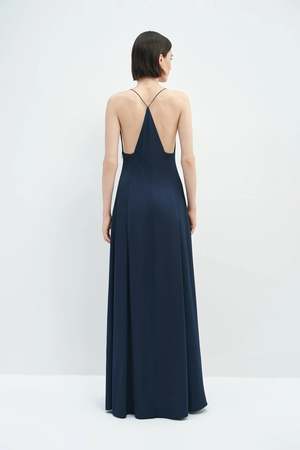 Fabrics 97% polyester, 3% spandex. Garment Care Dry clean only. Fit Guide Regular fit. True to size. Slight-stretch. Model is 5'10", 119 lbs, wearing size S. Bust 31.5" / Waist 23.6" / Hips 35.4". Description A sleek satin cami dress with a soft V neckline, designed to skim the body with fluid elegance and minimalist refinement.