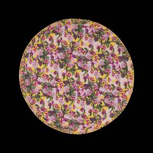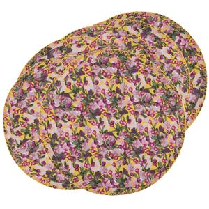 The Romance is Dead print is inspired by cherry blossoms against a deep blue sky. Round placemats with an embroidered border in heavy twill cotton. Pair with matching napkins or add a tablecloth for a full look. Due to their unique shape and fabric, placemats may roll up slightly when unpackaged; this can be rectified with steaming or will flatten over time. Each placemat measures 14 1/2 inches (38 cm) in diameter.