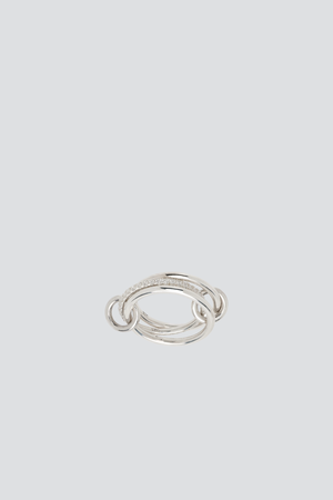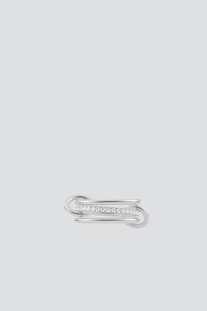 The Sonny Silver Ring features a core band of pav diamonds framed by two outer bands of solid metal, linked by two matching connectors. The Sonny features thin 1.7mm bands and is perfect for stacking. - Sterling silver / white diamonds - Handmade in USA
