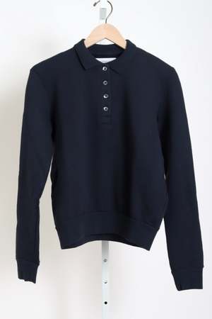 Cotton terry V-neck long-sleeve sweatshirt. 100% Cotton.