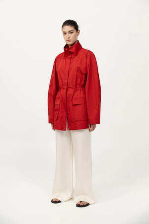 The Paper Taffeta Parka merges function with minimalist design. Featuring a stand collar, centre-front zip and raglan sleeves, its silhouette is adjustable using an internal drawcord waist with toggles. Unlined and lightweight, the Paper Taffeta Parka is ideal for layering in transitional climates. - 80% Recycled Polyester - 20% Silk - Recycled Polyester (GRS) Certificate - RWS Wool Certificate