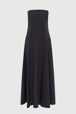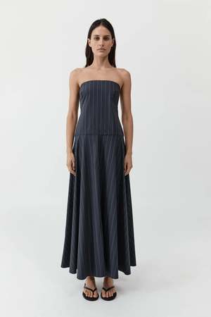 The Strapless Rouleau Dress from St. Agni is crafted from a breathable blend of cotton and recycled nylon, featuring a fitted strapless bodice that falls into a relaxed, full circle skirt at a maxi length. An open back is balanced by a delicate rouleau tie with button fastening. Refined and fluid, this dress offers an understated approach to modern occasion dressing. Fit: True to size, take your usual size. Composition: 66% Cotton, 31% Recycled Nylon, 3% Elastane. Care: Hand wash in cool water, lay flat or hang to dry. Made in China.