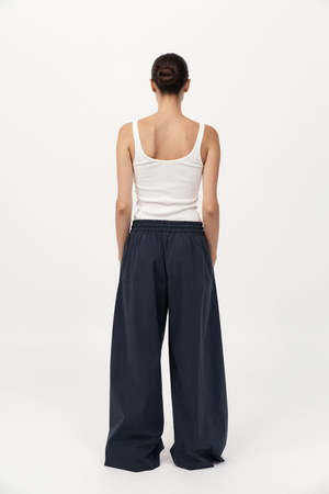 The Everyday Drawstring Pants combine functionality with refined comfort. Featuring a relaxed wide leg and adjustable waistband. Crafted from a breathable blend of cotton and recycled nylon for a soft structure. A versatile essential for pared-back dressing. Material: 66% Cotton, 31% GRS-certified Recycled Nylon, 3% Spandex Color: Dark Ink Care: Cool hand wash or dry clean.