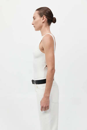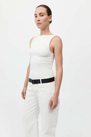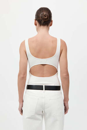 Crafted from organic cotton, the Rib Bateau Cut Out Top is a wardrobe staple, ideal for everyday wear. Featuring a sleek bateau neckline and ribbed knit construction, completed with a cut-out back detail. - Color: White - 92% Organic Cotton / 8% Elastane - Organic Content Standard (OCS) Certificate