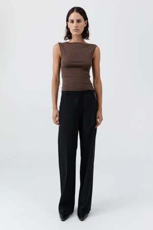 The Organic Cotton Ballerina Top is a refined wardrobe essential, crafted from 100% organic cotton for everyday comfort, featuring a bateau neckline and a scooped back. The top offers a sleek, form-fitting silhouette thats both elegant and versatile. Fabrication: 100% Organic Cotton Color: Fudge Fit Notes: True to size