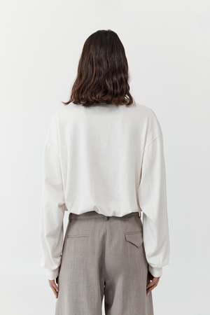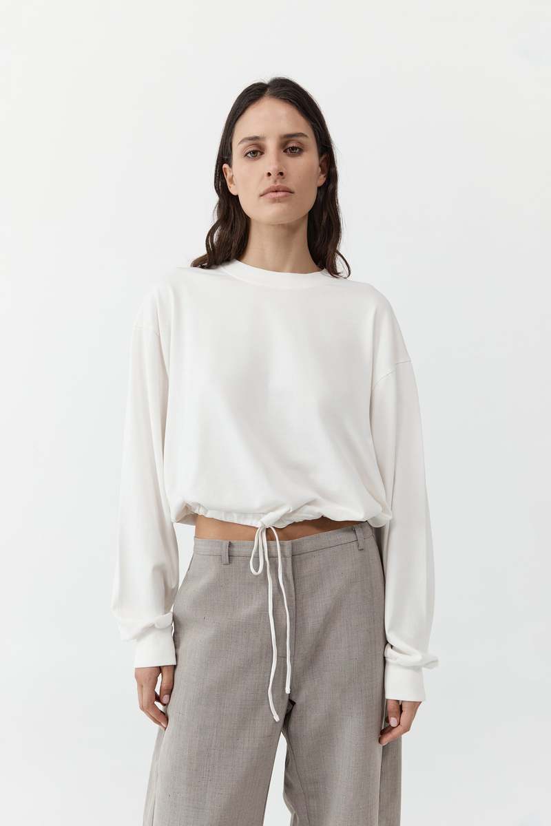 Cut from 100% cotton, the Drawstring Long Sleeve Top is designed to layer seamlessly. A clean crew neckline is finished with ribbed detailing, echoed at the cuffs. Dropped shoulders and a boxy silhouette create a relaxed feel, while an adjustable drawcord at the hem allows the shape to be cinched or worn loose. Made by St. Agni.