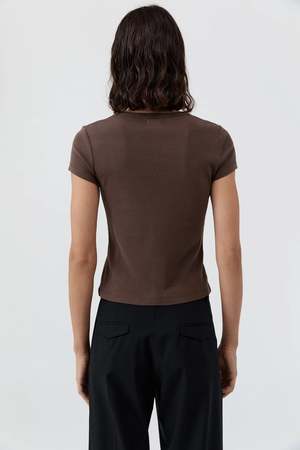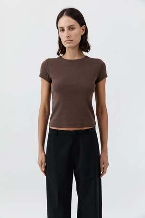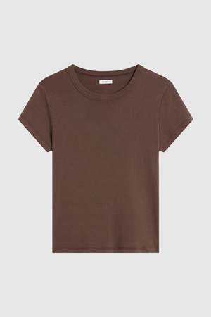A forever favourite silhouette, the Organic Cotton Baby Tee features a classic crewneck cropped silhouette, short-sleeve design and fitted shape. Easy for everyday wear and crafted from 100% organic cotton for a super soft hand feel. Color: Fudge 100% Organic Cotton Organic Content Standard (OCS) Certificate SMETA Sedex Ethical Audit