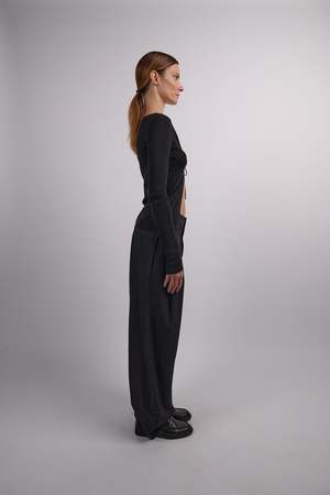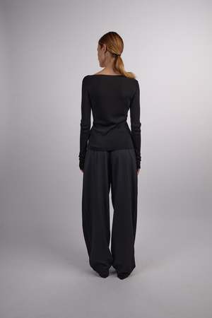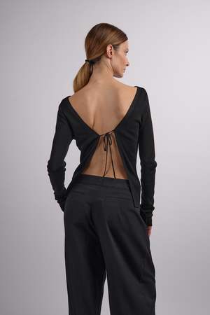Inventive in design and multi-functional in use, the Rouleau Tie Reversible Knit Top boasts an open tie back, long sleeve, and boat neck design. Made to be worn for whatever the occasion calls for, the Rouleau Tie Reversible Knit Top can be worn either way for a daring or demure ensemble. - Material: 100% Lyocell (Tencel) - Sleeve Length: Long Sleeve - Neckline: V-Neck - Length: Regular Made in China.