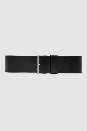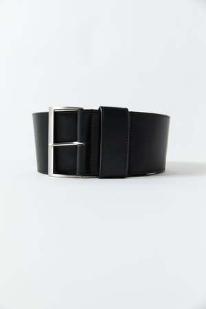 The Wide Classic Belt offers versatile styling with its bold silhouette and brushed silver rectangular buckle. A statement accessory that adds structure and definition, it effortlessly elevates any outfit. - 100% bovine leather - Lining: 100% cotton - Width: 3" - Length (measured from buckle base to middle hole): XS/S 35", M/L 38" - Length (measured from buckle base to end of belt): XS/S 41.5", M/L 44"