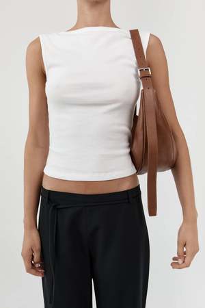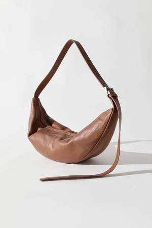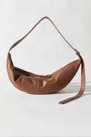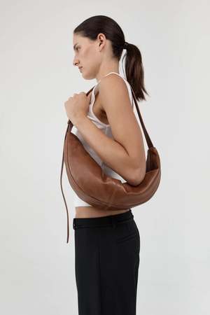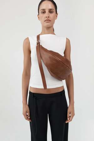 The Adjustable Slim Crescent Bag from St. Agni is an effortless companion for life on the move. Defined by its distinctive crescent silhouette and adjustable shoulder strap with buckle for a personalized fit. Finished with a cotton canvaslined interior and an internal pocket for organization, this bag balances form and function with a considered, modern edge. Dimensions: Length 58 cm / Height 15.5 cm Composition: 100% Calfskin Leather / Lining: 100% Cotton Canvas Made in China.