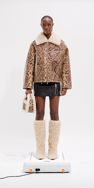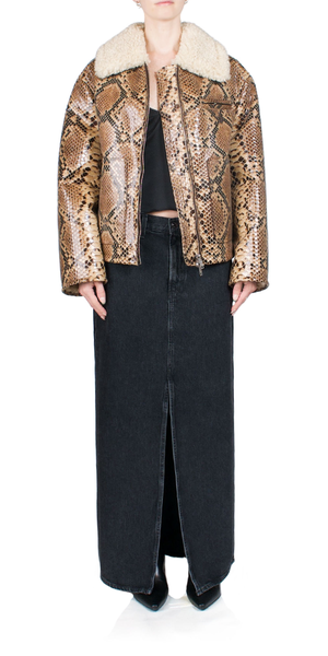 The Kaz Jacket from Stand Studio is a timeless statement piece. Crafted from snake-textured faux leather and complete with a faux fur collar, two-way front zip closure and a small chest zip pocket, this jacket is sure to keep you warm and stylish. Details: - Color: Brown Snake / Natural White - 80% Polyester, 20% Polyurethane / 100% Polyester - Dropped shoulders - Front patch pockets, chest zip pocket - Oversized fit - Vendor Code: 61956-9072 - Fits true to size; French Sizing - Model is 5ft 5in and is wearing a size 34 Title tag Stand Studio Kaz Jacket | Maison Rogue