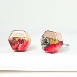 The vibrant and unique hues in the Sedona Stud Earrings celebrate the hope and possibilities of every new day. Each emperor stone dipped in 14K gold-plated brass shines in an array of earth tones with one-of-a-kind pops of colorno two pairs are alike. The colorful stone paired with the modern geometric shape makes the Sedona Studs a favorite for everyday wear. Due to the one-of-a-kind nature of the stone, exact colors and patterns may vary from the image shown. Box size and color may vary. Materials: 14K gold-plated brass with emperor stone ear studs. Hypoallergenic; lead and cadmium free with nickel content less than 100 ppm. Size: 0.31 inches.