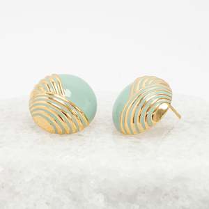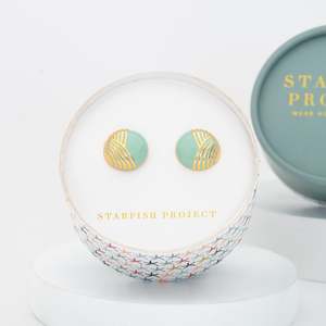 Let calm wash over you with our Serenity Wave Earrings. Shining in 14K gold plating with soft mint enamel, the flowing wave design captures the beauty of peace and renewal. Lightweight yet bold, these button earrings are perfect for adding a touch of serenity to your everyday style and make a thoughtful gift. With each purchase, you join a story of freedom, hope, and brighter futures for survivors at Starfish Project. Box size and color may vary. Materials: 14K gold-plated brass with enamel and sterling silver posts. Hypoallergenic; lead and cadmium free with nickel content less than 100 ppm. Size: 0.6 inches.