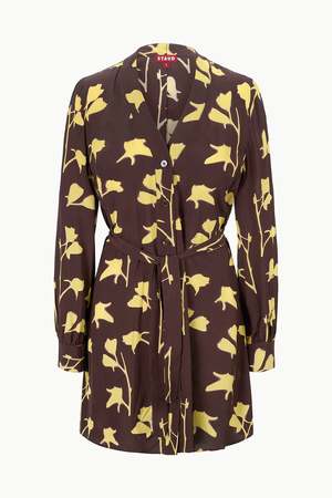 The Babs is a mini length shirtdress crafted from a printed viscose crepe and features a button front closure, a-line skirt and a tie belt. 100% ViscoseModel is 5'10 and wearing a size S. Dry clean only; Do not apply direct heat