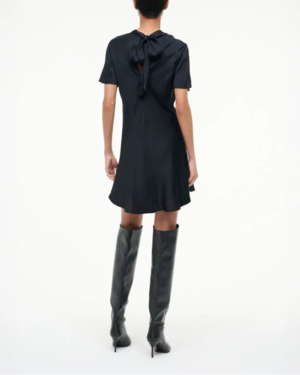 The Iris Silk Dress in Black by Staud is a classic cowl neck mini dress featuring short flutter sleeves and a tie at the back. Self: 90% Silk, 10% Elastane; Lining: 97% Polyester, 3% Elastane Model is 5'10 and wearing a size S. Dry clean only. #R25F2200SG