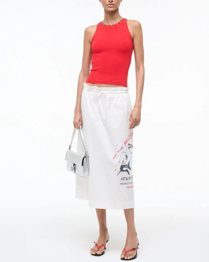 A sleek mid-rise skirt with an adjustable drawstring waist for a personalized fit. Made from stretch poplin, it offers structure and comfort in one piece. Dress it up or downthis wardrobe essential works with everything. Model is 5'10" and wearing a size S. Self: 98% Cotton, 2% Spandex. Lining: 100% Cotton. Dry clean only.