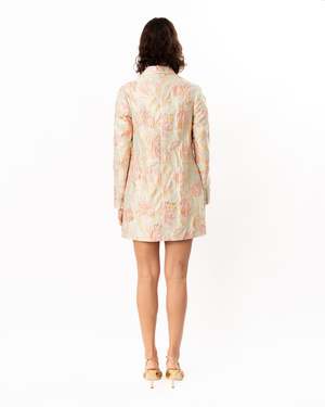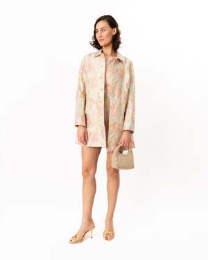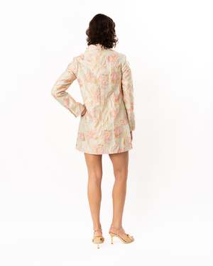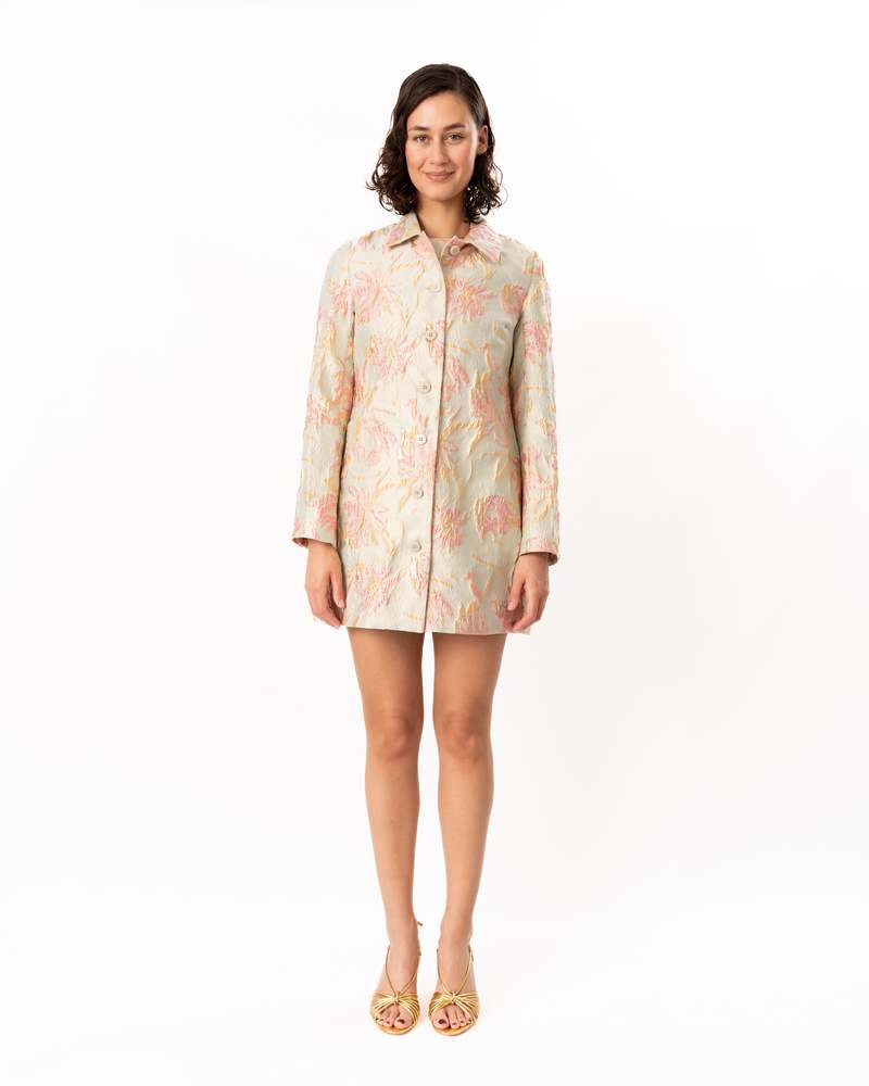 Elevate your outfit with this floral metallic brocade jacket, featuring striking contrast buttons that add dimension and polish. Designed to coordinate seamlessly with the matching Mimi Dress, it's the perfect layering piece. Self: 70% Polyester, 17% Metallic, 13% Nylon. Lining: 100% Polyester. Model is 5'10" and wearing a size S. Dry clean only.