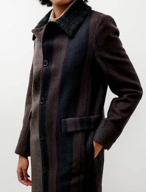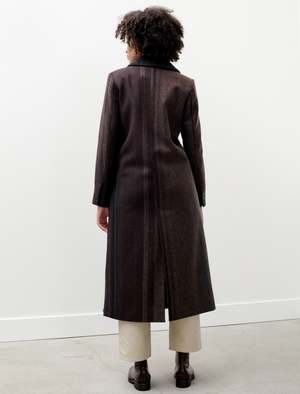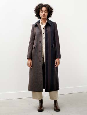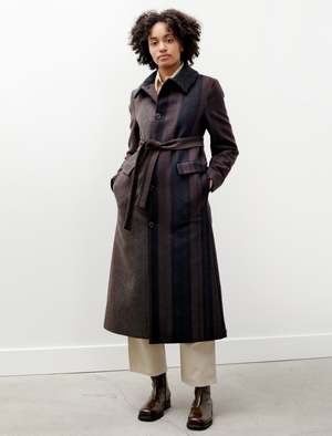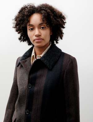 A reinterpretation of a classic Stephan Schneider shape. Its boiled wool texture is sharp and distinctive, accentuating the long, straight silhouette of the coat. Smart details like the self belt, and concealed button lapel help bring everything together. Long, subtle variations of colour in the fabric help draw the eye throughout its figure and elongate the form. This coat tends to fit slim through the shoulders. - Made in Belgium - 100% wool - Dry clean only - Slimmer fit - Jade is 5'9.5"; bust 33"; waist 27"; hips 41"; wears a size ii/medium