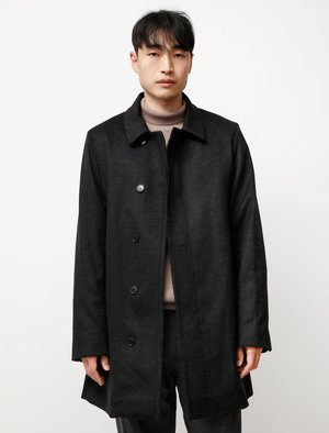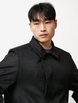 Produced in a charcoal wool blend, the construction of this jacket is discernible upon first encounter. Reminiscent of a car coat but updated with hidden buttons down the front, the stitchwork of this jacket is where Stephan Schneider's mastery becomes evident. Seams draw the eye down the jacket and across where the outseam pockets sit. Finished with two interior pockets and single button cuffs. - Made in Belgium - 75% wool, 25% nylon - Regular Fit - Dryclean - Kim is 5'11", 155lbs and wears size V / M - Product Measurements SIZE Pit to Pit Shoulders Shoulder to Cuff Back Length IV / S 22" 17" 26" 34" V / M 24" 17" 27" 35" VI / L 25 28"27.5" 35.5"