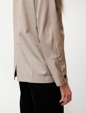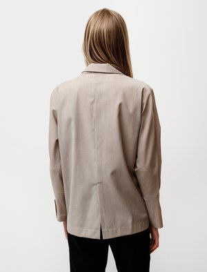 Taken directly from the men's collectsion, this jacket is cut from summer wool suiting fabric, but because it's unlined and lightweight, it drapes beautifully and is easy to wear casually with your favorite outfit. - Made in Belgium - 100% wool - Dry clean only - Chelsie is 5'11.5"; bust 32"; waist 24.5"; hips 35"; wears a size i / small