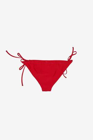 Stockholm Surfboard Clubs Cam Bottom in red is a triangle bikini bottom with adjustable side ties for a custom fit. Fully lined and made from a stretchy recycled polyamide blend, its an easy match with the Cam Top or any of the brands swim separates. Style code: W6000051.