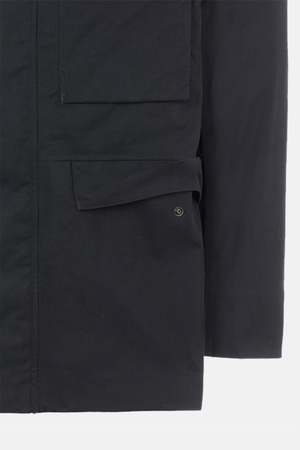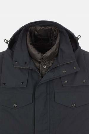 - Black - 100% Cotton - External fabric: 100% Polyamide / Nylon - Coating: Polyurethane resin - Padding (Feather): EIDERDOWN (Minimum 80% Down) 80% EIDERDOWN, 20% Feather - Contains non-textile parts of animal origin - Detachable hood, with drawstring, over standing collar - Bellows chest pockets, with flap and snap fastening - Ghost badge on the left sleeve - Two-way zip fastening - Snap fastening - GENTLY HAND WASH AT MAX 40C - Do not bleach - Do not tumble dry - Made in U.K. - MO7715437F1 V0029 Mpn MO7715437F1 V0029 Sku STOMFW22-09