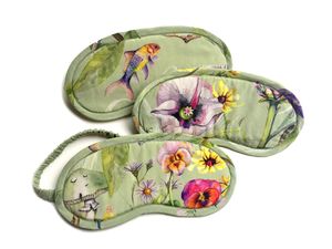 Every eye mask differs slightly in print and pattern. 100% Silk Exterior, 100% Organic Cotton Interior Made in Canada One size