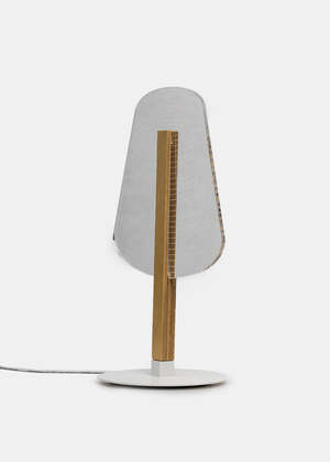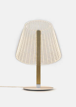 CLASSi by Studio Cheha. Laser engraved clear acrylic glass and hidden LED. 2D light with 3D visual effect. Materials: Iron Base, Plywood Birch, Acrylic Glass, LED. Measurements (cm): 33.5 height x 22 width. Specs: 100 - 240V warm light. Made in Israel.