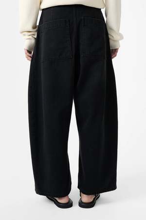 A true Studio Nicholson staple from season to season, the Chalco pants are cut wide and cropped, with a curved leg and dropped crotch. Here they are constructed from a denim thats been woven from regenerative cotton in a rich washed-black shade. Details: - 52% regenerative cotton, 48% cotton - Wash at 30C - Warm iron - Made in Turkey