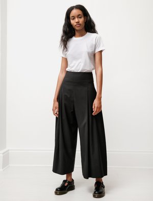 These pants are made from light tropical wool that's smooth to touch and drapes beautifully with ease. Deep front and back pleats ascend from their ultra high-waist band, creating volume through the hips. Finished with a concealed zip closure at the side for minimal interference with their unique shape. - Made in England - 100% wool - Dry clean only - Fits true to size - Jade is 5'9"; bust 32"; waist 26"; hips 39"; wears a size 1