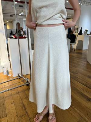 Kick Front Skirt. 96% Cotton, 4% Nylon. Made in Portugal.