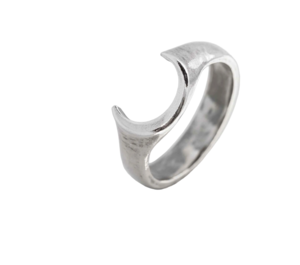 Celestial, a ring from Sue The Boy. Details The Celestial Signet Ring features a 12mm x 11mm moon on a 5mm wide band, cast in 925 sterling silver. Certifications: 100% recycled 925 silver. Note: Sue The Boy jewelry is oxidized by hand, so slight color variations are celebrated in each unique piece.